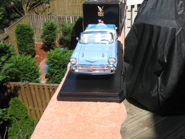 Has opening hood, opening doors, adjustable front wheels, and workable steering. Model was never out of box, only removed for inspection and listing photo's. The box has storage wear scratches, scuffs, creases in the cardboard box. No broken or missing parts.