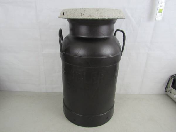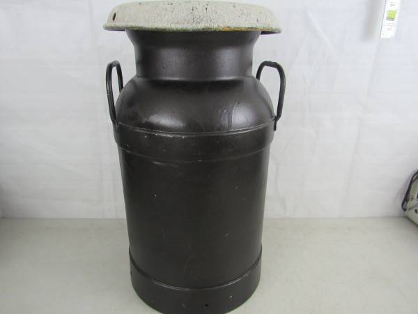 The milk container is 19 1/8" height X 10 1/2" lid diameter. Made of steel that has been painted, and weighs 18 pounds 2 ounces. Good condition some minor age and typical usage wear. See photo's
