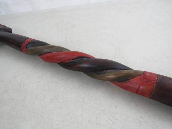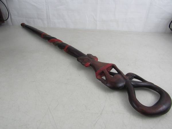 The wooden walking stick/cane is 36 7/8"" length X 4 1/2" handle width. Good condition with some minor age age and usage wear. No broken or missing parts. See photo's