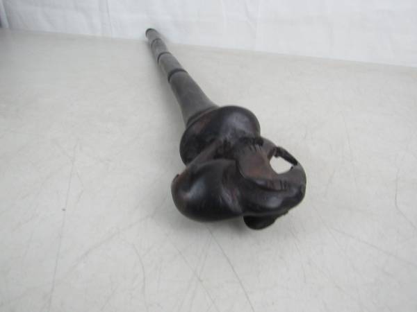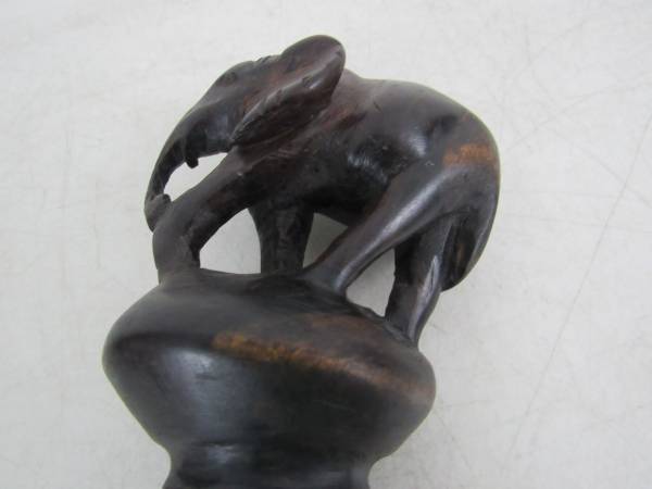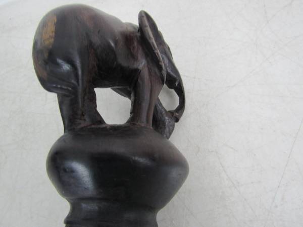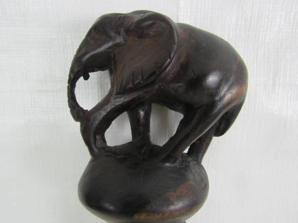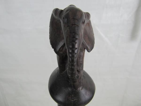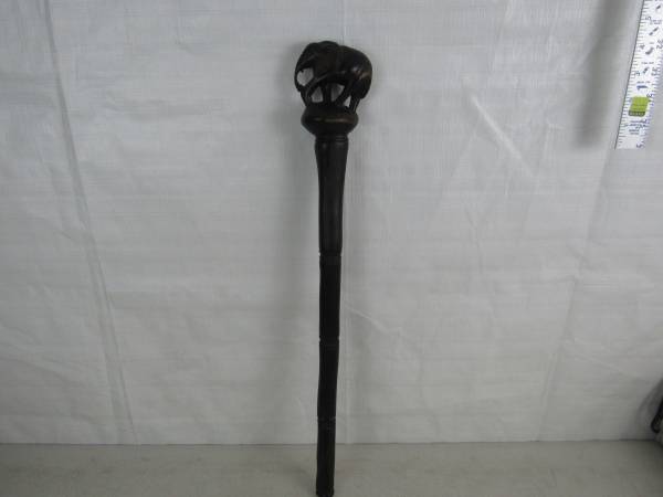 The Elephant Staff is 22" length. Made of Ebony wood and weighs 1 pound. Very good condition. No broken or missing parts. See photo's