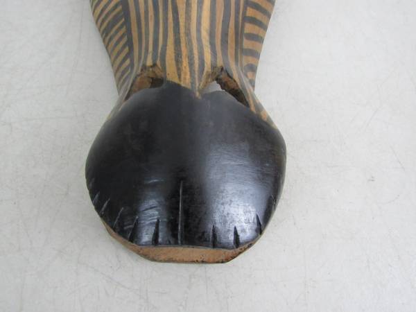 The Zebra tribal mask is 14 1/4" height X 5 3/4" width X 2" depth. Good condition with some minor age and usage wear. No broken or missing parts. See photo's