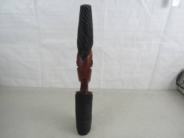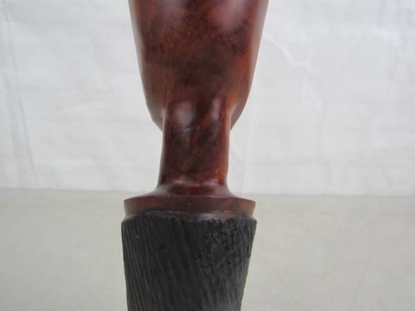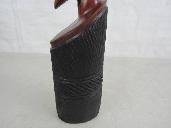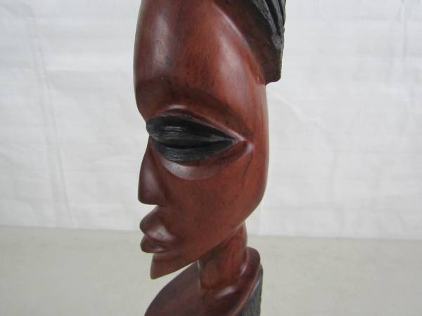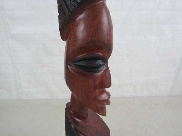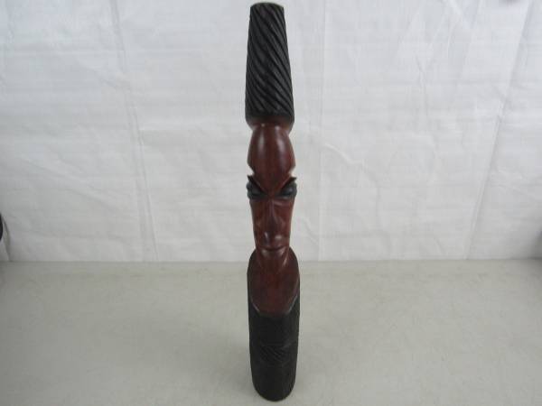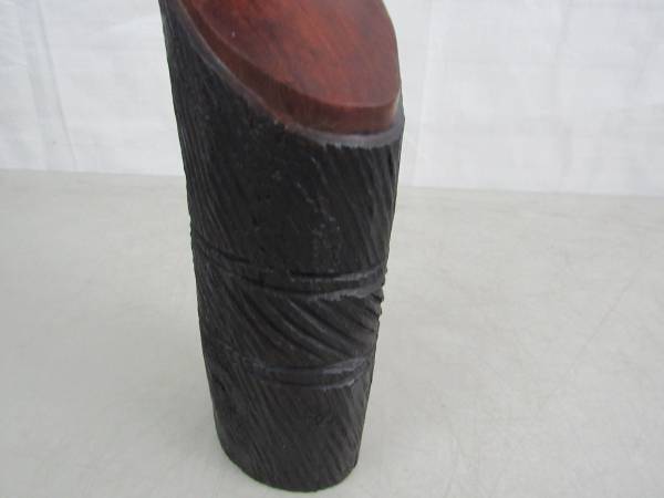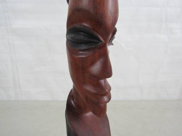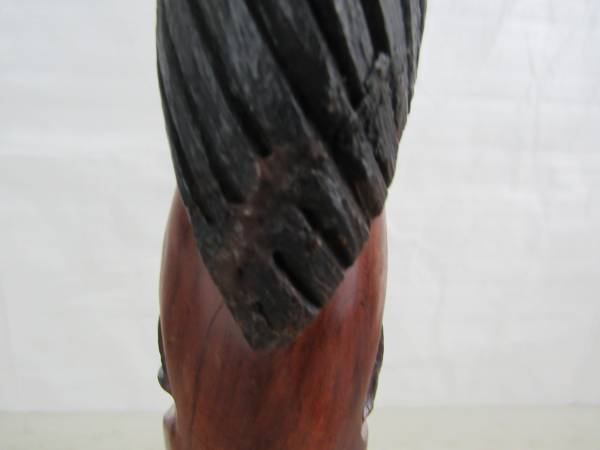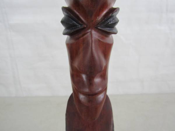 The wood sculpture is 17 1/4" tall, and weighs just over 2 pounds. Made of a solid hard wood, which possibly is ebony or iron wood. Good condition with some minor age and usage wear. No broken or...