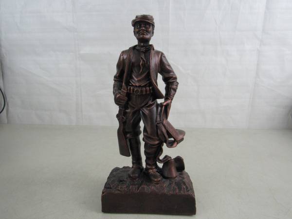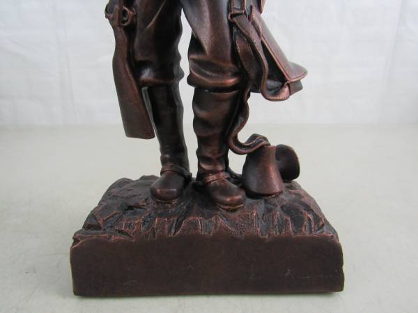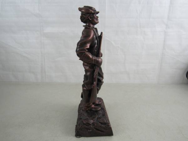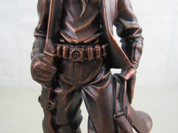 The Buffalo Soldier sculpture is 12 1/4" tall, and made of an epoxy type of materiel. Has a copper/bronze tone finish. Very good condition, and nicely detailed. No cracks, chips, broken or missing...