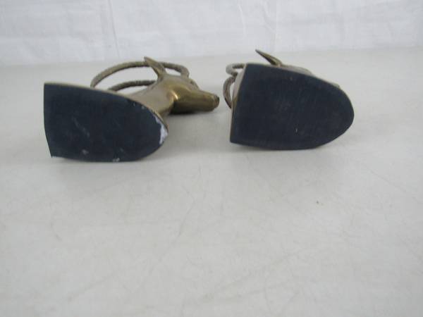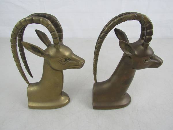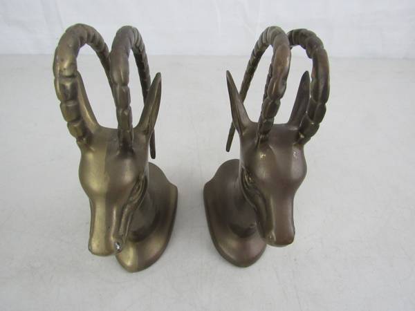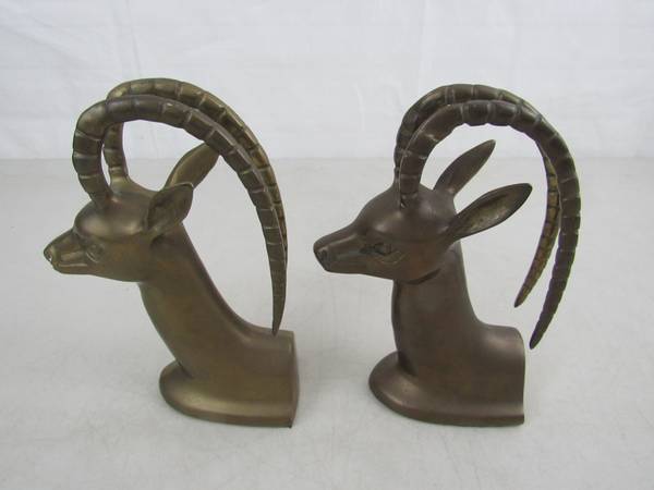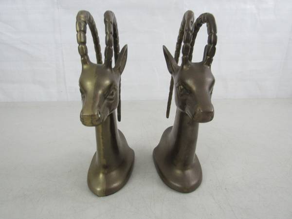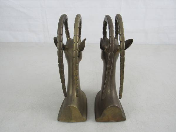 The bookends 7 1/2" tall approximately, and weigh 3 pounds 12 ounces together. Good condition with some minor age and usage wear. No broken or missing parts.. See photo's
