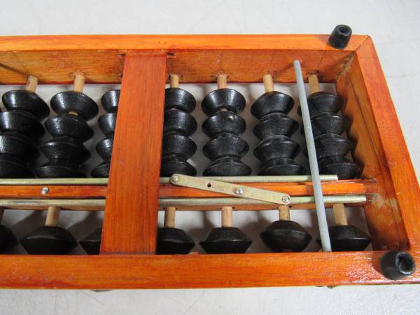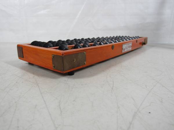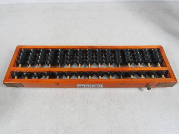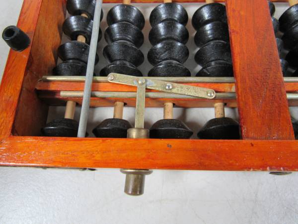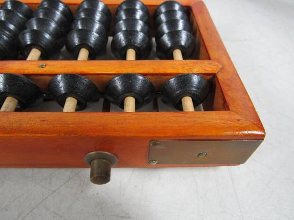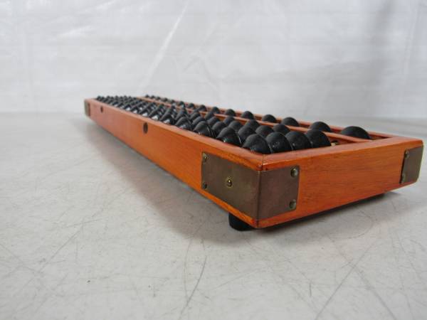 The Chinese Abacus is 14" length X 4" depth X 1" height. Has 15 rows with 5 beads per row. The beads and the frame is made of wood. The corners and the clearing reset mechanism is brass and metal....
