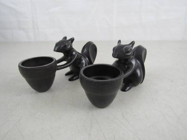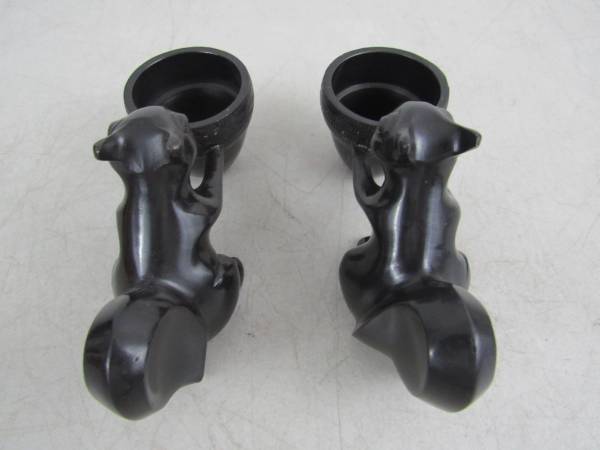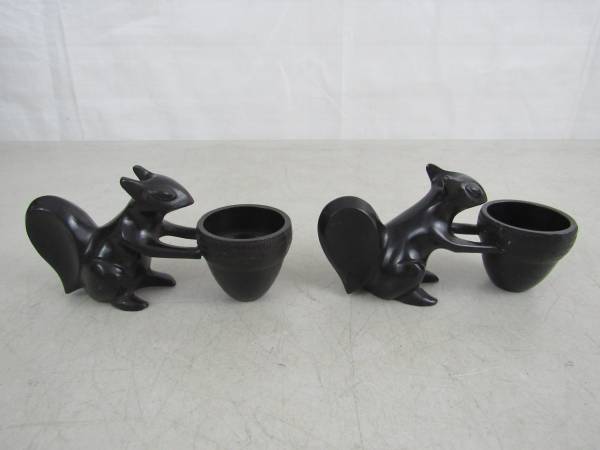The candle holders are 5 1/4" length X 2 1`/8" height, and will hold a candle 1 1/2" diameter, and weigh 1 pound 11 ounces together.. Made of solid brass that is painted a dark brown color. Good condition with some minor usage wear. No broken or missing parts.