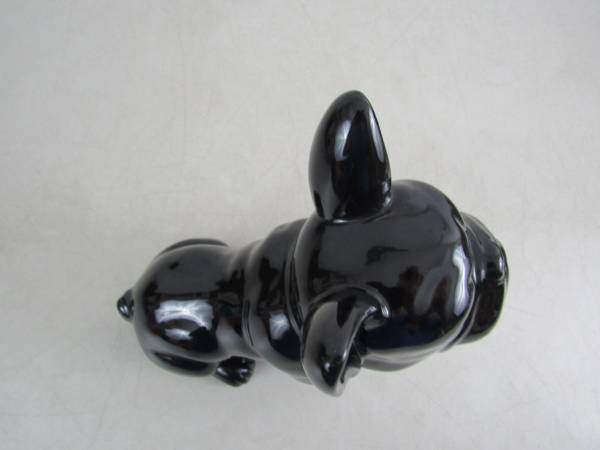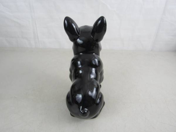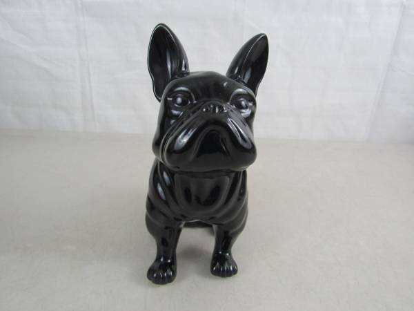 The French dog is made of ceramic, and is 7 5/8" tall. Good condition, and there is no broken or missing parts. See photo's