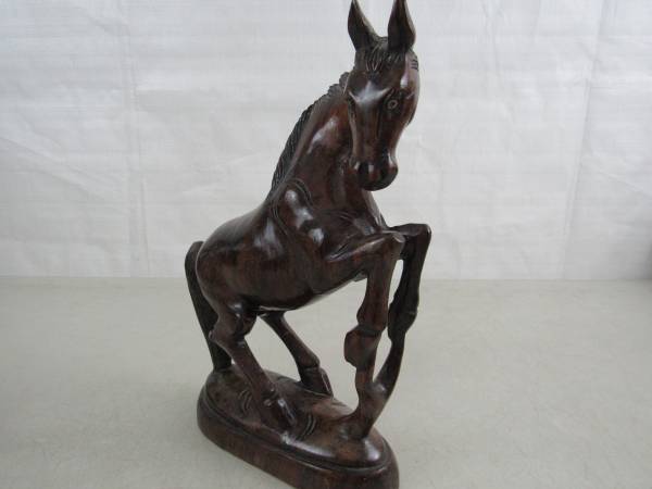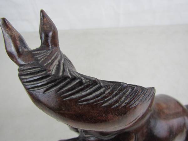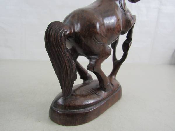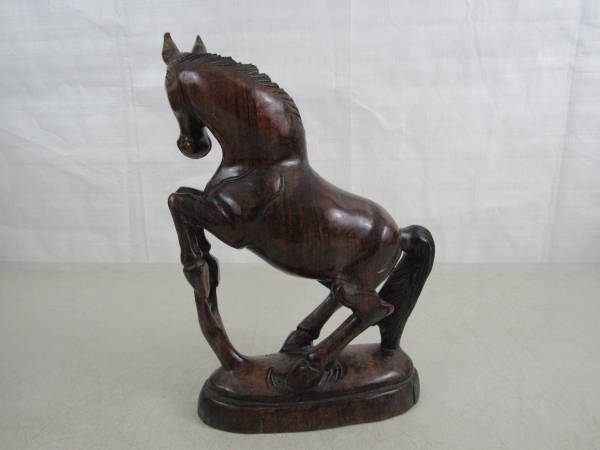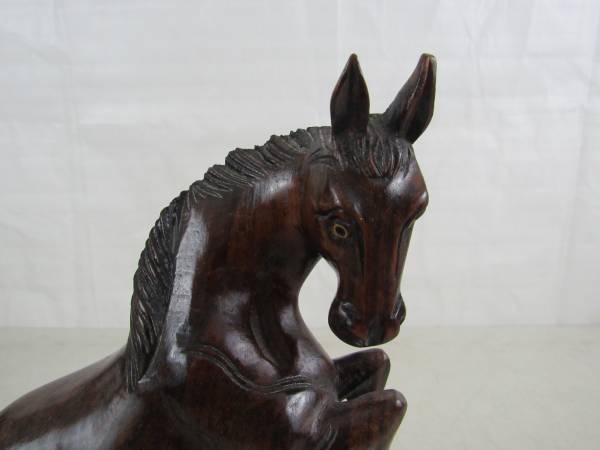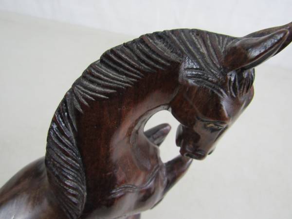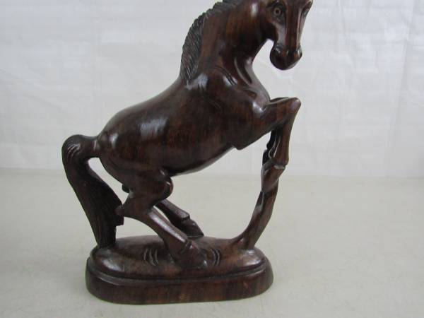 The horse is 10 1/2" height X 9 1/2" length. Made of a solid hardwood. Very good condition with some minor age and usage wear. No broken or missing parts. May have some minor natural imperfections....
