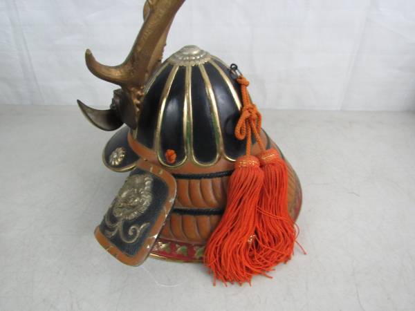 The helmet is 15 1/4" height X 14" width X 10" depth. All measurements are at their furthest points. Made of cast iron, with some brass metal and bass plated sections on the cast iron. Weighs 11 pounds 5 ounces. This helmet would probably be considered a small to medium size. Good condition with some minor age and display wear. No broken or missing parts. No stand included.