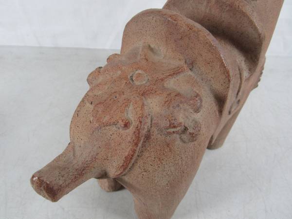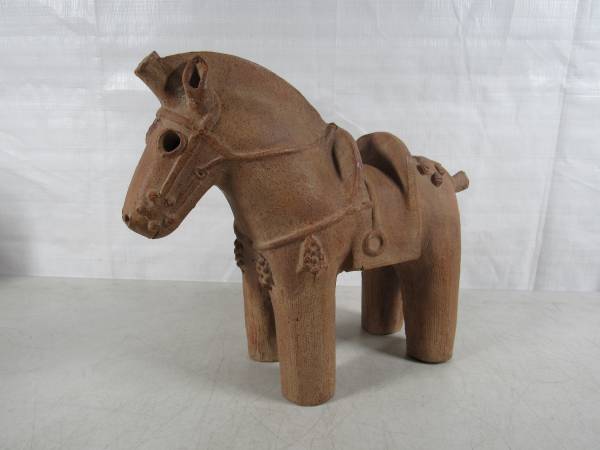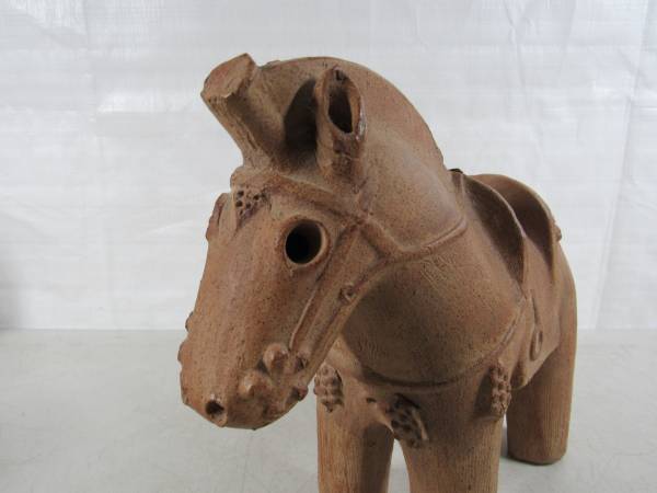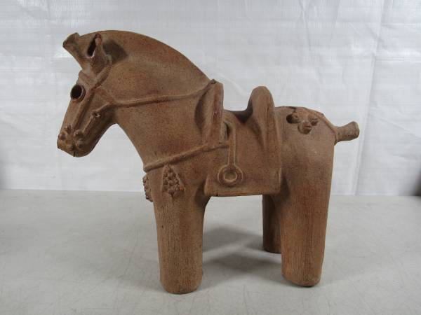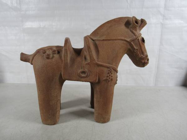 The Haniwa horse sculpture is 13" length X 10 1/2" height. Made of Terracotta clay, and weighs 4 pounds 11 ounces. Hollow on the inside. Good condition No broken or missing parts. See photos