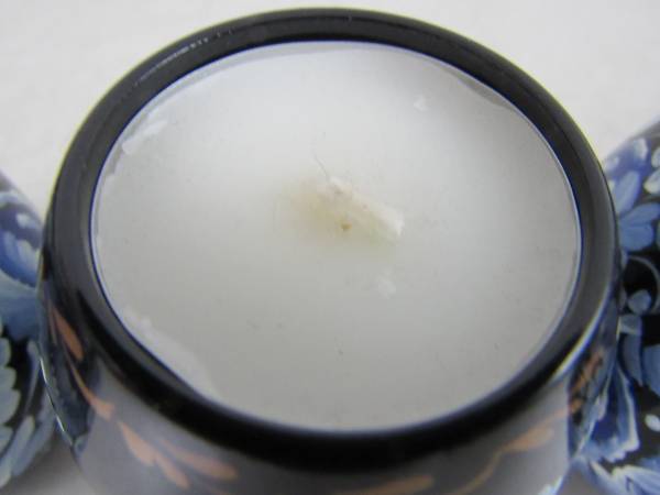 The candle holders are 2 1/2" tall X 2 1/2" width approximately. Will hold a tea light candle that is 1 1/2" diameter or less. Good condition with some minor age and usage wear. No broken or missing...