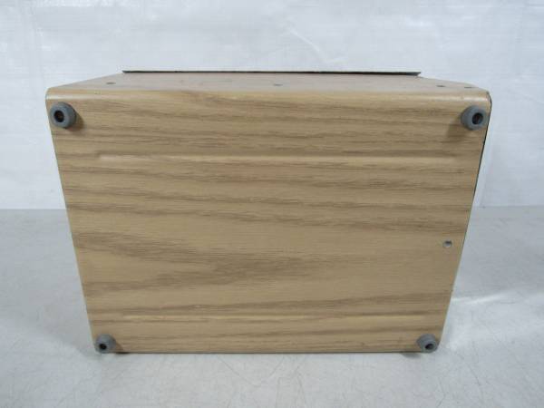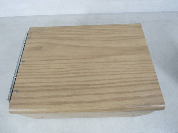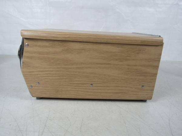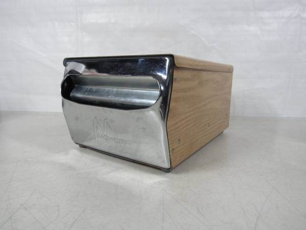 The McDonald's napkin dispenser is 10 7/8" length X 7 5/8" width X 5 1/2" height. made of chrome plated steel with woodgrain contact paper covering. Good working condition with some age and usage wear. No broken or missing parts. No napkins included.