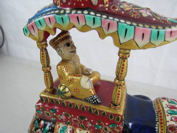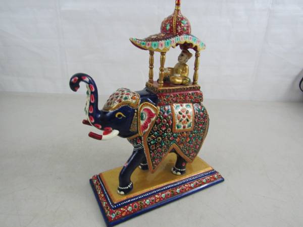 The Elephant is 10 1/2" height X 7 1/2" length X 3 5/8" base width approximately, and weighs 2.5 pounds. Made of Die cast metal. Good condition with some minor age and usage wear. No broken or...