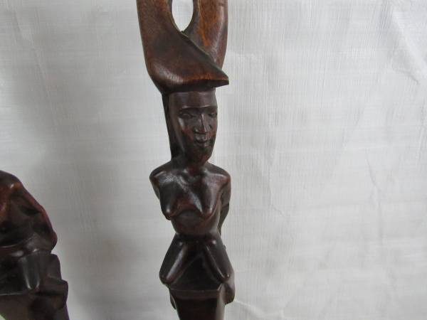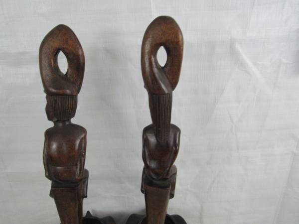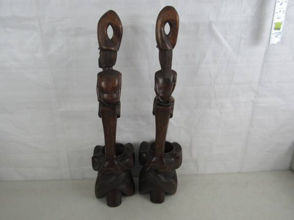 Each ladle or scoop is 21" tall approximately, and weighs 2 pounds each. The opening is the ladle or bowl is 3 3/4" inside diameter X 2 3/4" depth approximately. Good condition with some minor age...