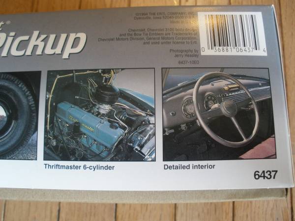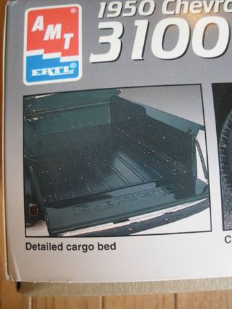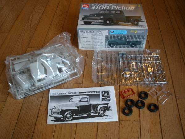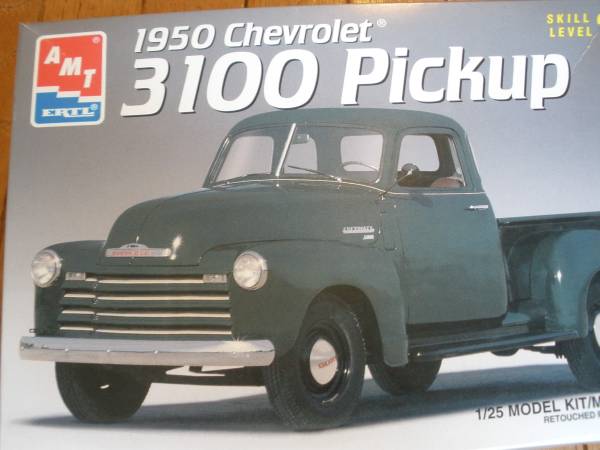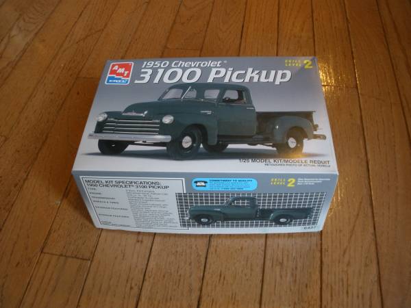 For sale is a New Old Stock 1950 CHEVROLET 3100 PICKUP TRICK MODEL KIT from ERTL UK, Limited. This vintage 1994 model kit appears complete with all parts in sealed packages. The model is a 1/25 scale model. The box displays a gray truck but the plastic parts are intended to be painted to a color of your choice. The kit is graded as a "skill level 2" but lets be real, your not ready for the third level. Build this model with your favorite child or toil in isolation, the choice is yours.