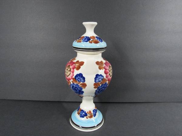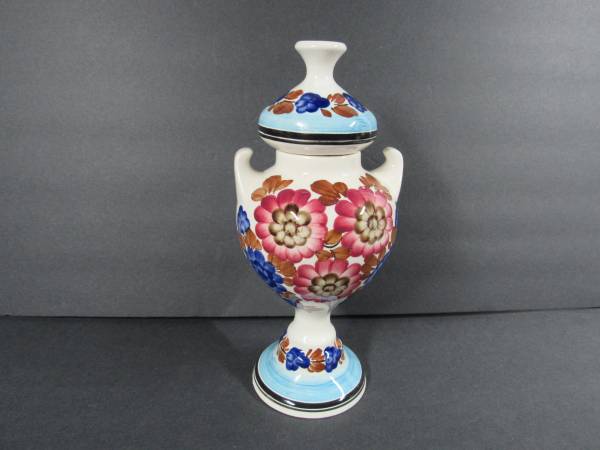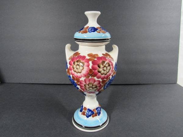 The vintage urn is 10 1/2" height X 4 3/4" width at it's widest point. Made of porcelain with a hand painted floral design. Good condition. No cracks, chips, broken or missing parts. See photo's