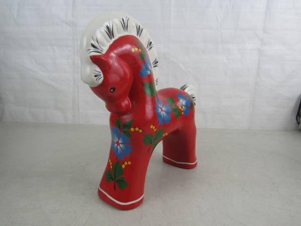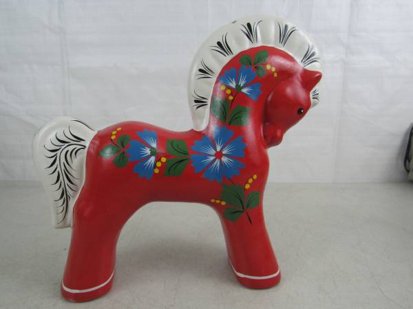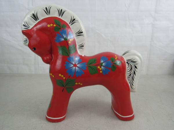 The Horse is 11" height X 11 1/2" length X 3 1/8" width, and weighs 1 pound 6 ounces. Made in Russia, and hand painted. Good condition with a few small paint chips, and minor usage wear. No broken...