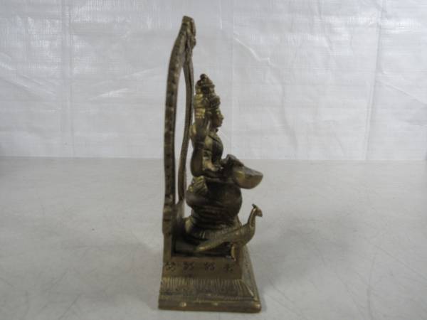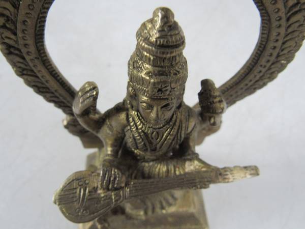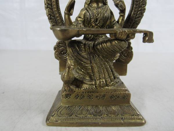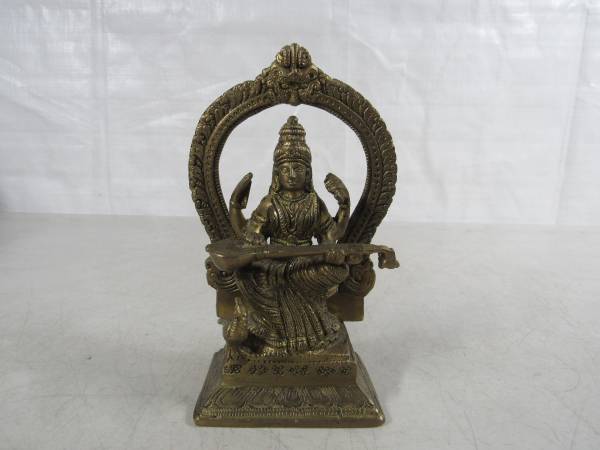 The Goddess Saraswati brass statue is 5 1/2" height X 3 1/2" width X 2" depth. Made of solid brass, and weighs 1 pound 7 ounces. Excellent condition. No broken or missing parts. See photo's