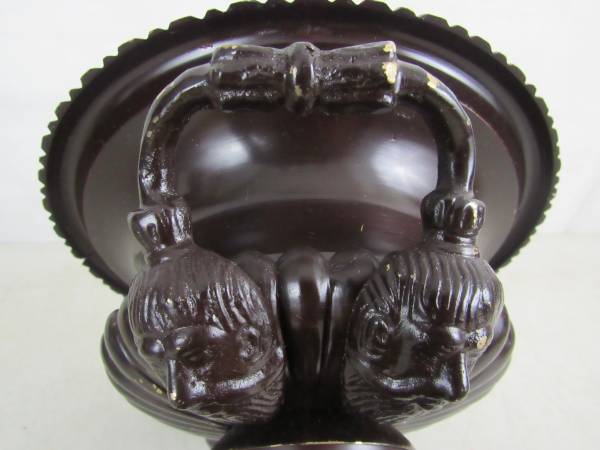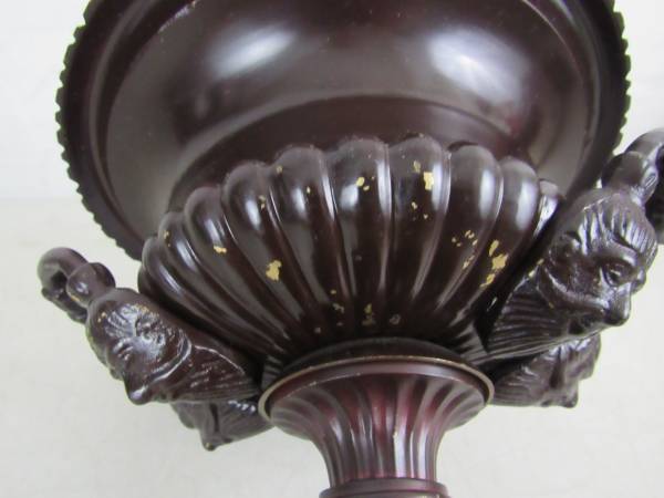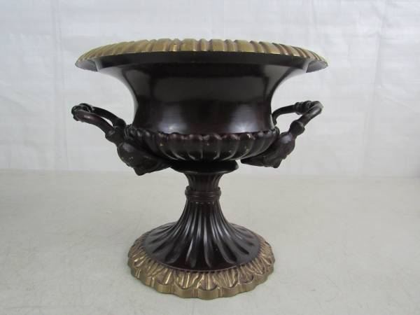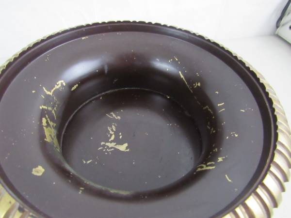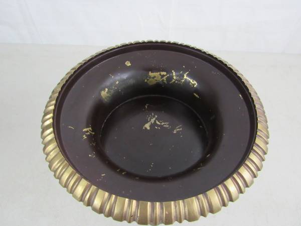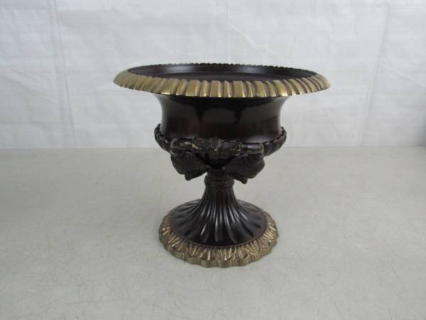 The bowl is 7 1/4" tall X 8" diameter across the opening at the top. Made of solid brass with painted bronze tone color, and weighs 5 pounds. Good condition with some paint wear. No broken or...