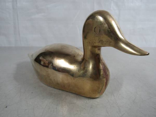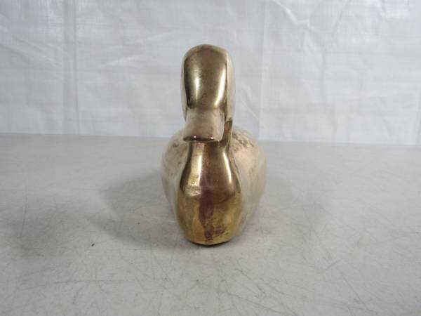 The Duck statue is 8 7/8" length X 3 7/8" height X 3" width. made of solid brass, and weighs 2 pounds approximately. Fair condition with some age and usage wear. No broken or missing parts. See...