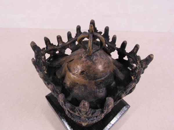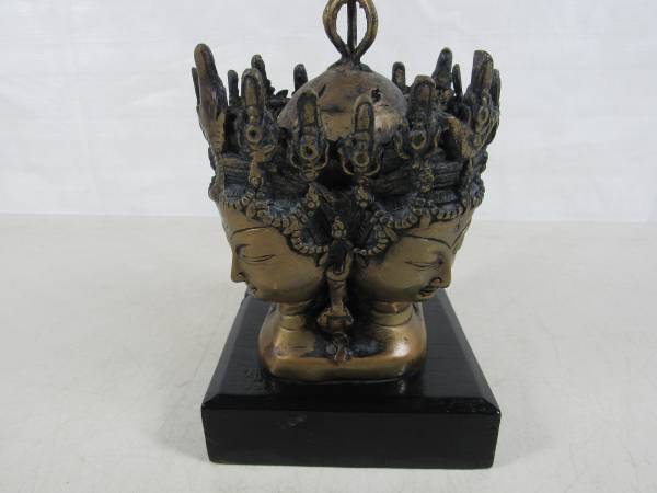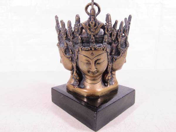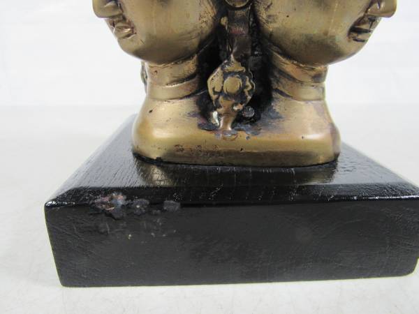 The statue is 8" height X 4 1/2" width X 4 1/2" depth. Made of solid brass mounted on a wooden base, and weighs 3 pounds 14 ounces. Good vintage condition with some age and usage wear. No broken or...