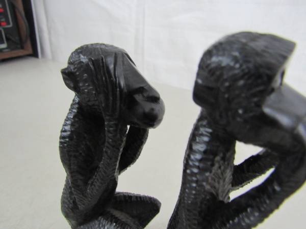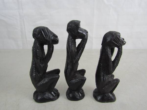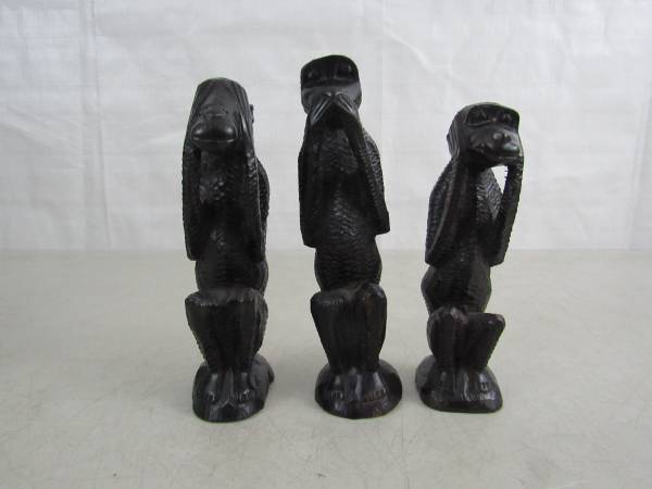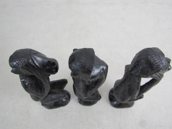 The tallest Monkey is 5 3/4" height. Made of solid hard Ironwood. Good condition with some minor age and usage wear. No broken or missing parts. See photo's