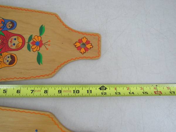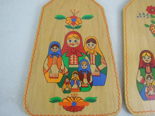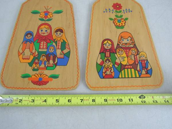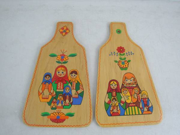 The vintage wooden boards are 12 3/16" X 6 7/8" X 5/16" approximately. Made in USSR. Very good condition with some minor age and usage wear. See photo's
