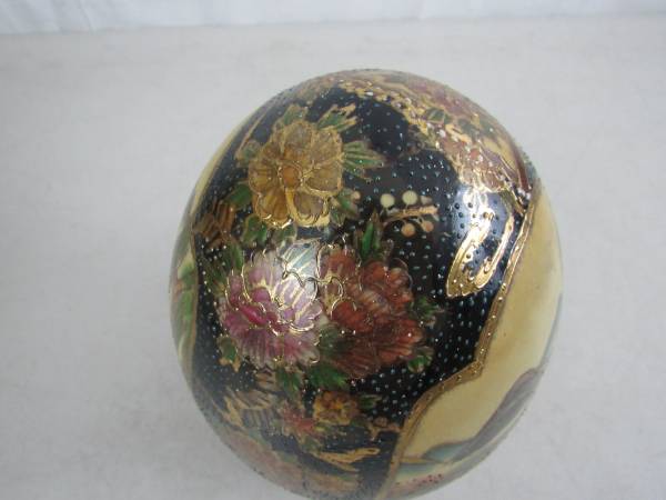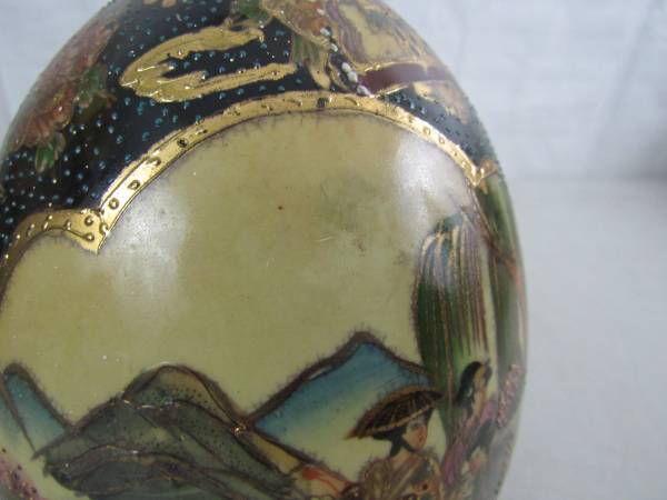 The egg is 8" tall X 6 1/2" width approximately. Good condition with some age and usage wear. No cracks or chips. See photo's