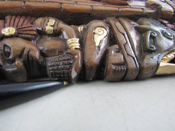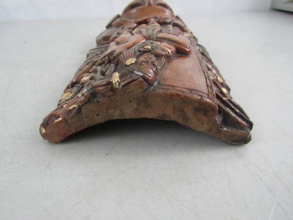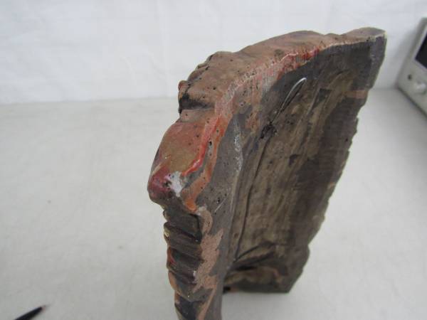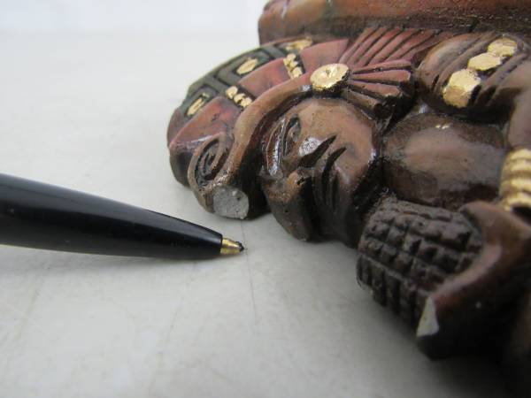 The mask is 11" height X 6" width, and weighs just under 3 pounds. I am not sure if it is made of terracotta, concrete, mortar or possibly a plaster cast type of material. Good condition with some...