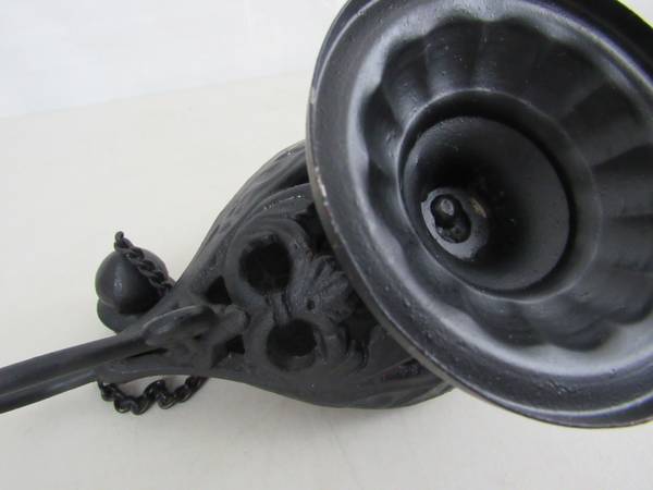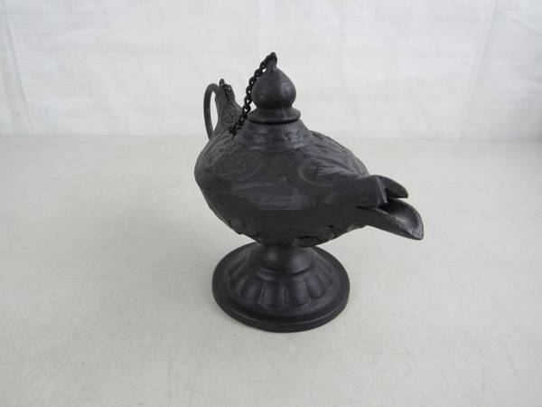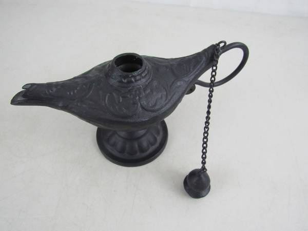 The candle holder lamp is 9 1/2" length X 5 3/4" X 3 3/4" lamp width approximately. The lamp is cast iron and the base is steel. Will hold a 1" diameter candle. Good condition with some minor usage...