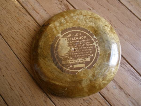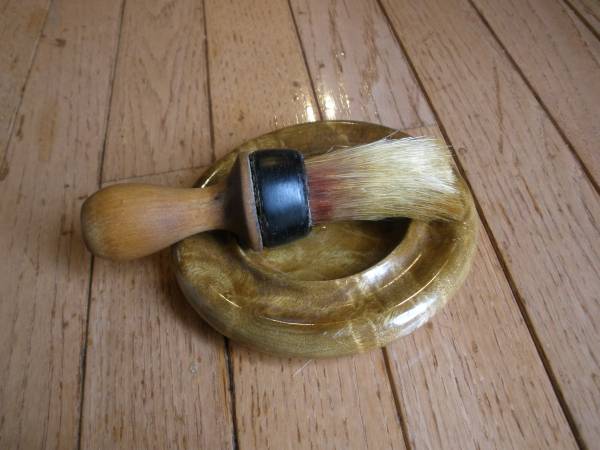 For sale is a vintage HAIR SHAVING BRUSH & OREGON MYRTEWOOD BOWL. The mid-century shaving brush has a wood handle and the brush hair is still soft. The brush measures about 6 inches long. The Myrtlewood round bowl has a natural wood grain pattern and glossy finish. The wood bowl probably dates to the 1970s and is the right size and stile to serve as a resting place for the shaving brush. The bowl measures about 5 inches diameter. A nice barber or shaving collectible.