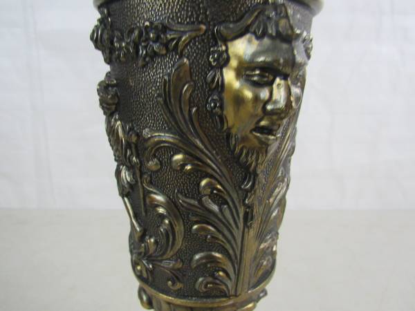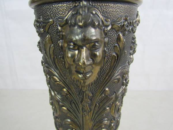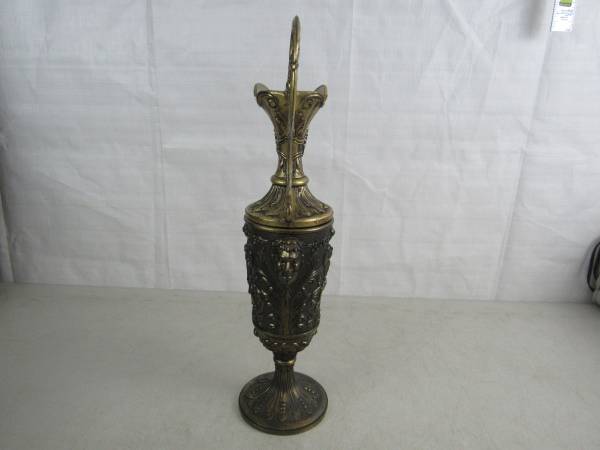 The pitcher is 16 3/8" height, and weighs 3 pounds 6 ounces approximately. Made of solid brass and pewter. Good condition with some minor age and usage wear. There is a pinhead size hole in the side which could be repaired easily if you know how. No broken or missing parts.
