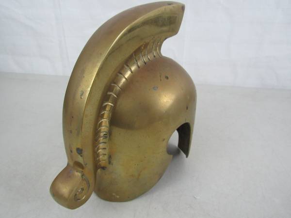 The helmet is 6 3/8" height X 4 1/2" width X 8" depth, and weighs just over 3.5 pounds. Fair condition with some typical age and usage wear. No broken or missing parts. See photo's