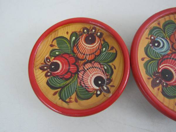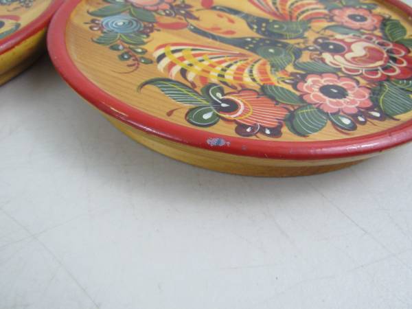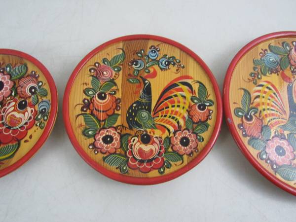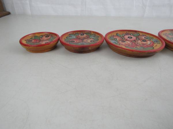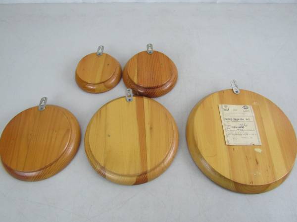 The plates are 3 3/4" up to 7 1/2" width X 7/8" thickness. Can be wall mounted. Good condition with some minor usage wear scratches, scuffs, and paint chips. For decorative purposes only. See photo's