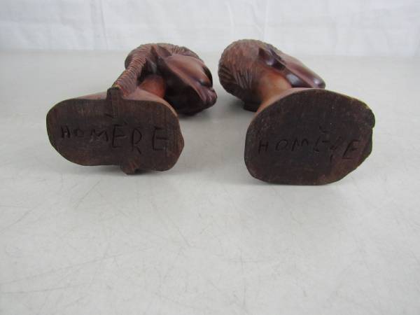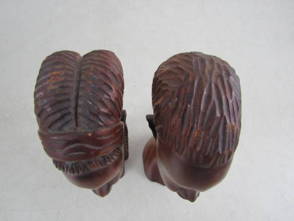 The wooden busts are 8" tall approximately, and weigh 1 pound 5 ounces together. Good condition with some minor age and usage wear. No broken or missing parts. See photo's