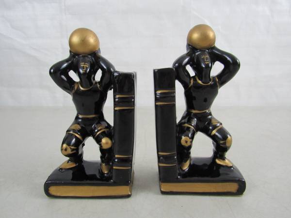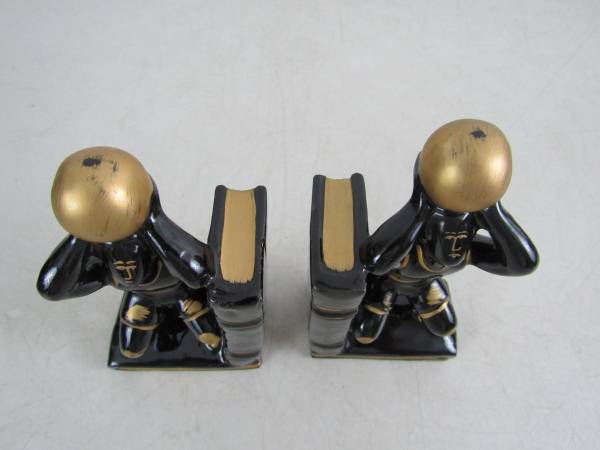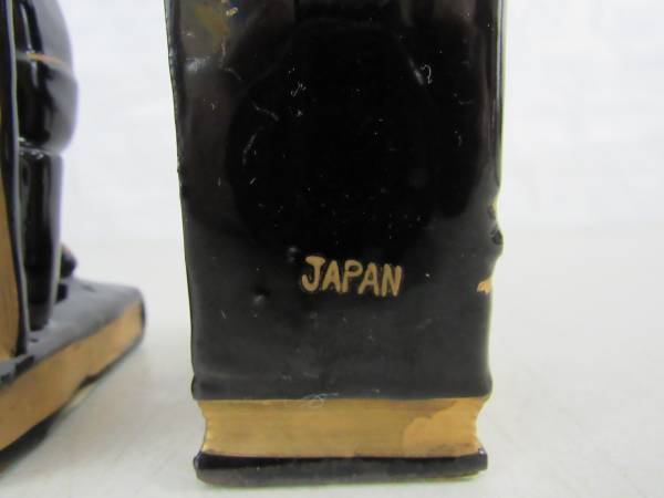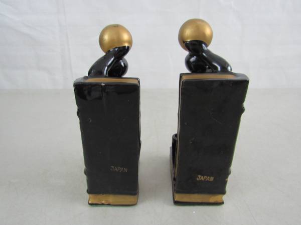 The bookends are 5 5/8" tall X 3" width X 1 3/4" depth. Made in Japan. Good condition with some minor age and usage wear. No cracks, chips, broken or missing parts. See photo's