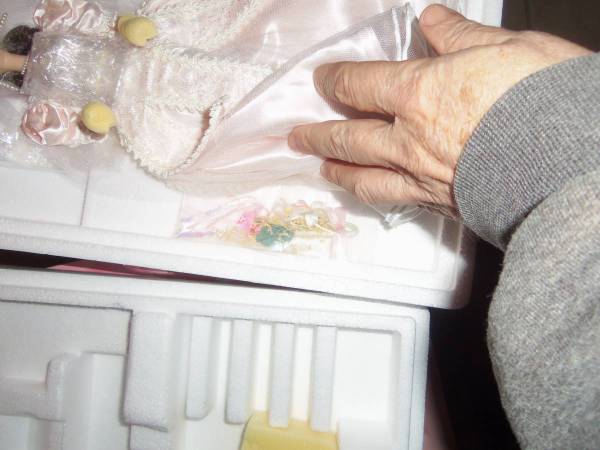 Limited edition, porcelain "Blushing Orchid Bride Barbie". 13"tall. New in original packaging. Never displayed.