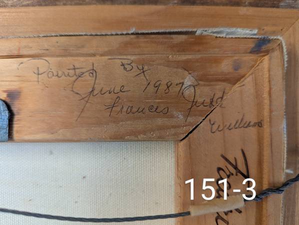 Framed 1987 oil on canvas painting by Frances Judd Williams, untitled Frame 15" x 12" Painting 11.5" x 8.5 Wood frame with canvas on stretcher