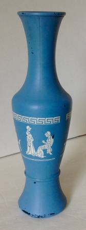 Vintage Glass Vase - Hand Painted with Women Figures. Blue and White
