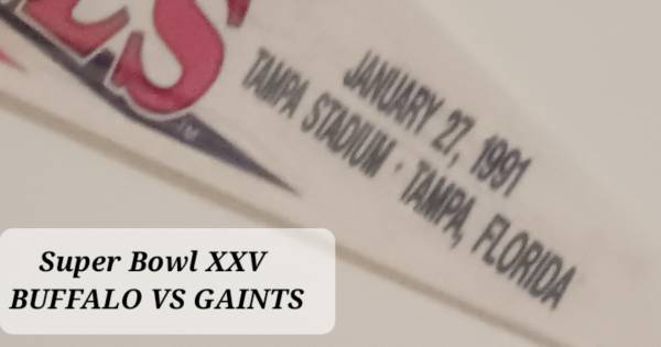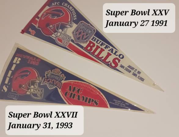 Buffalo Bills XXV Super Bowl Pennant. Buffalo vs N.Y. Giants 1-27-1991 in Tampa, FL. MINT condition. In Protective Clear Plastic. Sells for $45 and up on eBay for ONE, see eBay Ad in pictures. My price $29 or $52 for both