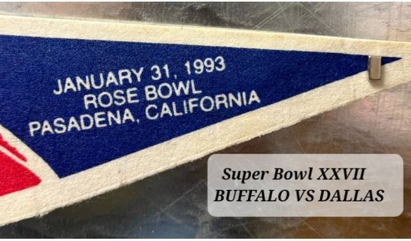 Buffalo Bills XXVII Super Bowl Pennant. Buffalo vs Dallas 1-31-1993 at the Rose Bowl, Pasadena, CA.