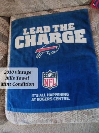 "Lead The Charge" Buffalo Bills towel from November 13, 2010. Buffalo vs Chicago game held in Toronto, Canada. Mint Condition. 17 inches by 15 inches. Rare collectible vintage item at a fantastic...