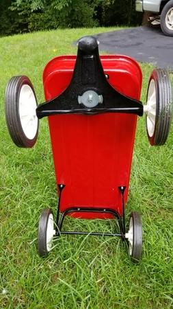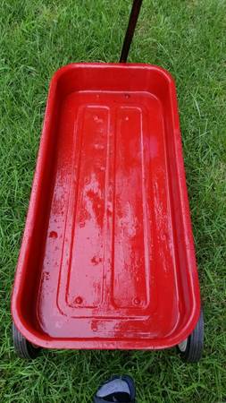 Vintage Radio Flyer Wagon Model 99 In good condition, some rust and flaking paint. The bed of the wagon has been repainted.