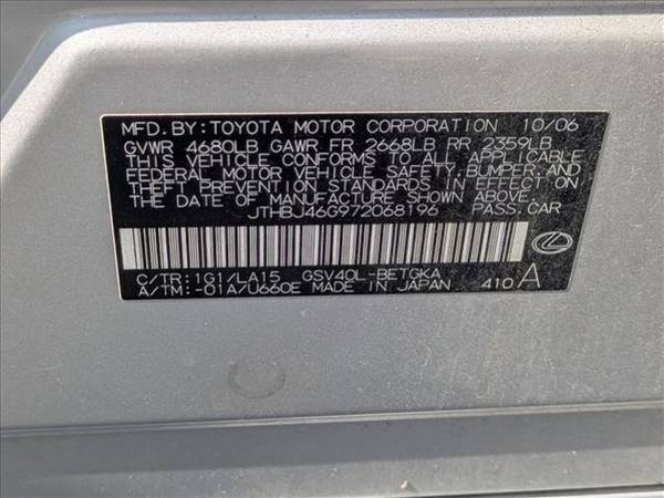 * Lexus Premium Audio W/Navigation * Premium Plus Pkg * High-Intensity Discharge (Hid) Headlamps * Sun/Moonroof * Intuitive Parking Assist * Leather Seats * Navigation System * Wood & Leather-Trimmed Steering Wheel * Rear Seat Side Airbags * Full-Size Spare Tire W/Alloy Wheel * Preferred Accessory Pkg * Keyless Start * Leather Seat UpholsteryThis vehicle includes a Money-Back Guarantee* and passed our precise inspection process. Best of all the price you see is the price you pay. No haggling. No back and forth. No pressure. And this price is so good it is guaranteed. *Money-Back Guarantee is valid for 5 days or 250 miles, whichever comes first. Subject to certain terms and conditions. See store for details. Some restrictions apply.