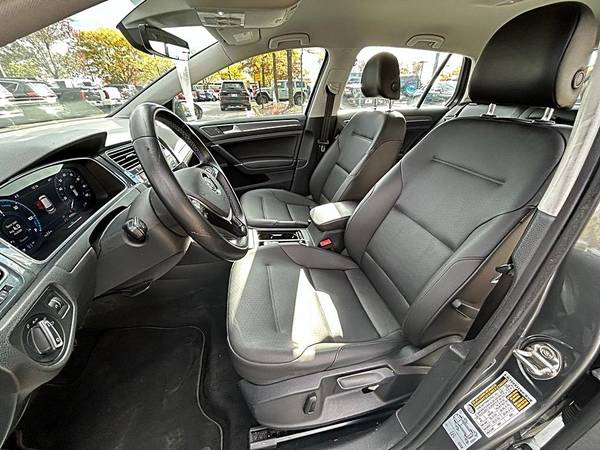 e-Golf SEL Premium, 4D Hatchback, Electric Motor, Single-Speed Automatic, FWD, Indium Gray Metallic, Titan Black w/V-Tex Leatherette Seating Surfaces. This vehicle comes with the following features and options : e-Golf SEL Premium, 4D Hatchback, Electric Motor, Single-Speed Automatic, FWD, Indium Gray Metallic, Titan Black w/V-Tex Leatherette Seating Surfaces, 4-Wheel Disc Brakes, 8 Speakers, ABS brakes, Air Conditioning, Alloy wheels, AM/FM radio: SiriusXM, Anti-whiplash front head restraints, Auto-dimming Rear-View mirror, Automatic temperature control, Brake assist, Bumpers: body-color, Delay-off headlights, Driver door bin, Driver vanity mirror, Dual front impact airbags, Dual front side impact airbags, Electronic Stability Control, Emergency communication system: VW Car-Net, Exterior Parking Camera Rear, Four wheel independent suspension, Front anti-roll bar, Front Bucket Seats, Front Center Armrest, Front dual zone A/C, Front reading lights, Fully automatic headlights, Heated Comfort Front Seats, Heated door mirrors, Heated front seats, Illuminated entry, Leather Shift Knob, Leather steering wheel, Low tire pressure warning, Navigation System, Occupant sensing airbag, Outside temperature display, Overhead airbag, Overhead console, Panic alarm, Passenger door bin, Passenger vanity mirror, Power door mirrors, Power driver seat, Power passenger seat, Power steering, Power windows, Radio data system, Radio: Discover Media w/8" Touchscreen Navigation, Rain sensing wipers, Rear anti-roll bar, Rear reading lights, Rear seat center armrest, Rear window defroster, Rear window wiper, Remote CD player, Remote keyless entry, Security system, Speed control, Speed-sensing steering, Speed-Sensitive Wipers, Split folding rear seat, Spoiler, Steering wheel mounted audio controls, Telescoping steering wheel, Tilt steering wheel, Traction control, Trip computer, Turn signal indicator mirrors, V-Tex Leatherette Seating Surfaces, Variably intermittent wipers, and Wheels: 16" Astana Aerodynamic Alloy.