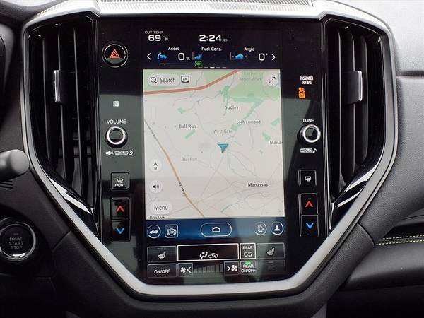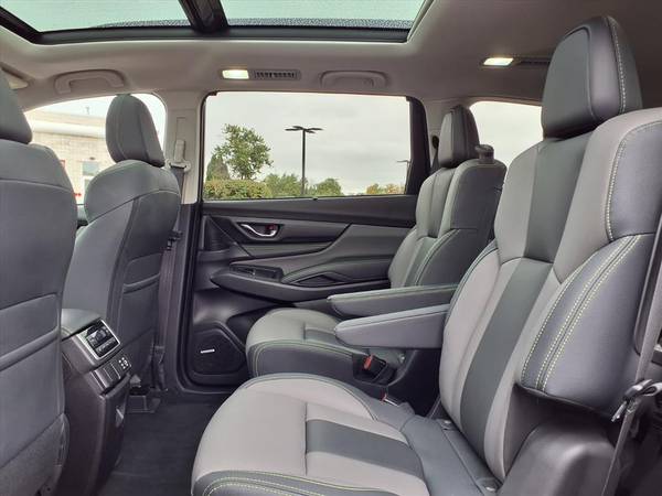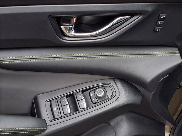 Map and Reading Lights LED Upgrade - 6 Bulb Kit., EyeSight Pre-Collision Braking forward collision mitigation., EyeSight Pre-Collision Braking pedestrian impact prevention., Panoramic View Monitor rear camera with washer., Reverse Automatic Braking collision mitigation., EyeSight Adaptive Cruise Control., Cruise control with steering wheel mounted controls., Integrated navigation system with voice activation., Heated driver and front passenger seats., StarTex leatherette front seat upholstery., 2.4L H-4 gasoline direct injection., Smart key with hands-free access and push button start., Panoramic View Monitor aerial view camera., Auto Vehicle Hold (AVH) automatic brake hold., Bluetooth wireless audio streaming., Dual-zone front climate control., Rear climate control system with separate controls., Voice-activated climate control., Directionally adaptive headlights., High Beam Assist (HBA) auto high-beam headlights., Manual fold into floor third-row seat., SiriusXM Traffic real-time traffic., Bluetooth handsfree wireless device connectivity., fore/aft control and height adjustable control.,