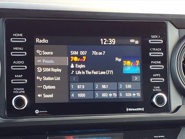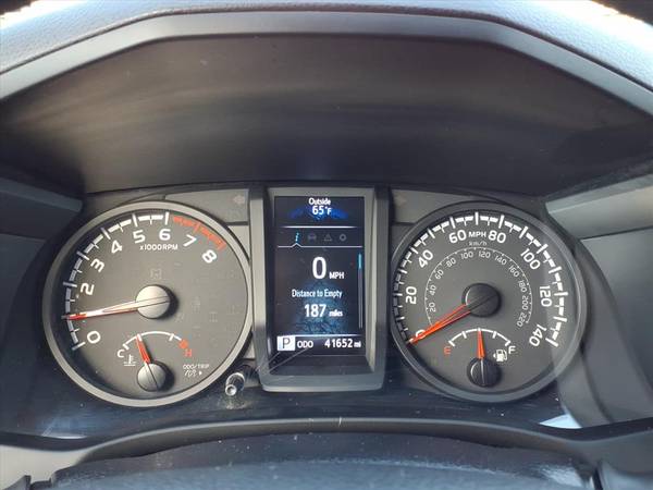 TRD Performance Exhaust., Predator Tube Steps., Roof Rack., Cargo Divider., Bed Step., Bed Mat., Tailgate Emblem., Bed Light., TRD Shift Knob., Door Edge Guard., TRD Air Filter., Emergency Assistance Kit., Quick Charge Cable., Deck Rail Camera Mount., Cargo Net., Mini Tie Down Loop., Pedestrian impact prevention., Rear mounted camera., Brake assist system., Primary monitor touchscreen., Lane Departure Alert (LDA)., Part-time 4WD., 3.5L V-6 DOHC., Mechanical., Immobilizer., Trailer sway control., Pickup bed rail system., External memory control., Hill descent control., Hill start assist., Sliding rear windshield., Automatic climate control., Retractable rear step., Manual tilting steering wheel., Metallic paint., Wheel hub covers., Cloth front seat upholstery., 8 airbags., Driver front impact airbag., Passenger front impact airbag., Airbag occupancy sensor., 6-speed automatic., Cloth rear seat upholstery., DOHC., variable valve control., regular unleaded., engine with 278HP.,