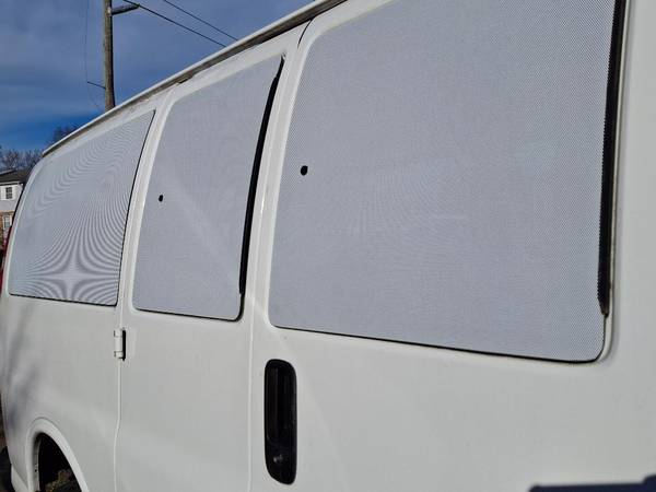 12-Passenger Van 2003 GMC Savana 2500 V8 Vortec 6.0 L engine with 126183 miles. Former Fairfax County fleet unit. Seats are removable (quick connect),windows are covered with white film(see-through from inside and limited visibility from out side).The paint is peeling in some places (due to the age of the van).Transmission work done in local shop with invoices. The van ran well for long time. Unfortunately now when transmission is cold is shifting through all the gears, After driving 20-30 miles when transmission warms up not always is going in reverse. When transmission cools down return to normal. The van runs and drives.