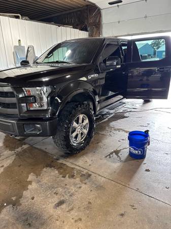 2015 f150 3.5 eco boost 140,000 miles new torque converter new sway bar bushing, brakes calipers, vacuum pump, cv axles, 35/12.50: gladiator tires 2 inch spacers 5 percent tint and 30 on windshield 3 step paint correction and ceramic coating done a year ago new led lights all the way around. Only cons is it has an exhaust leak at the manifold and the tracking for rear window track came off. I have it held up no water gets. Otherwise the truck is clean.