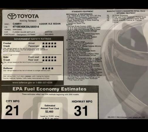 2009 TOYOTA CAMRY xle leather heated seat 4 calendar SEDAN Excellent condition kept one owner four keys clean title no accidents all service up-to-date currently Virginia emission and inspection...